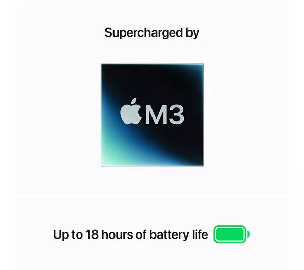 • Apple M3 chip with 8‑core CPU, 8‑core GPU, 16‑core Neural Engine